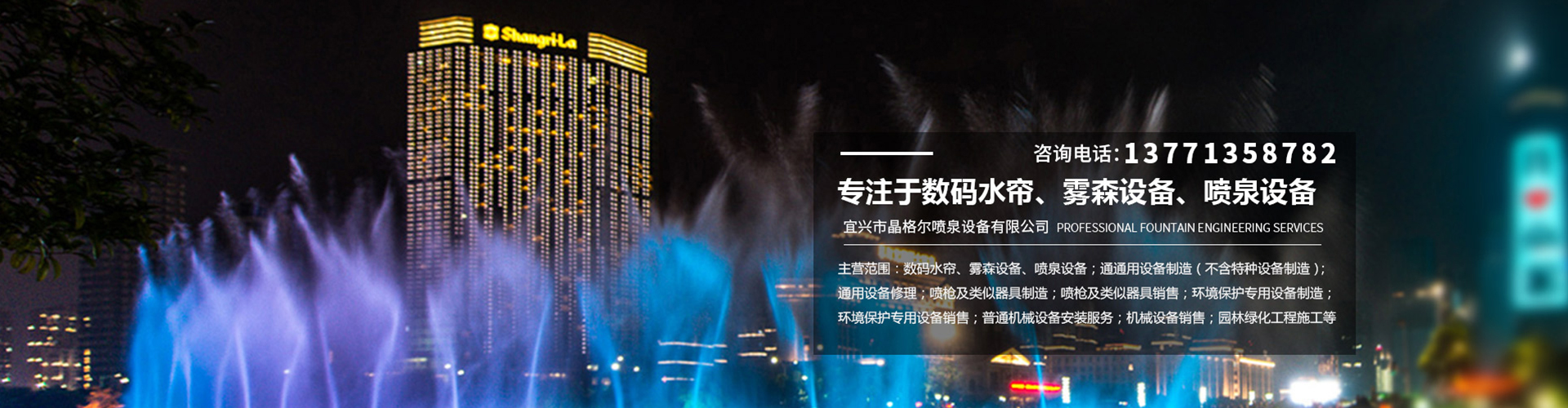 宜兴市晶格尔喷泉设备有限公司是一家主营范围:数码水帘、雾森设备、喷泉设备;通用设备制造(不含特种设备制造);喷枪及类似器具制造等项目。